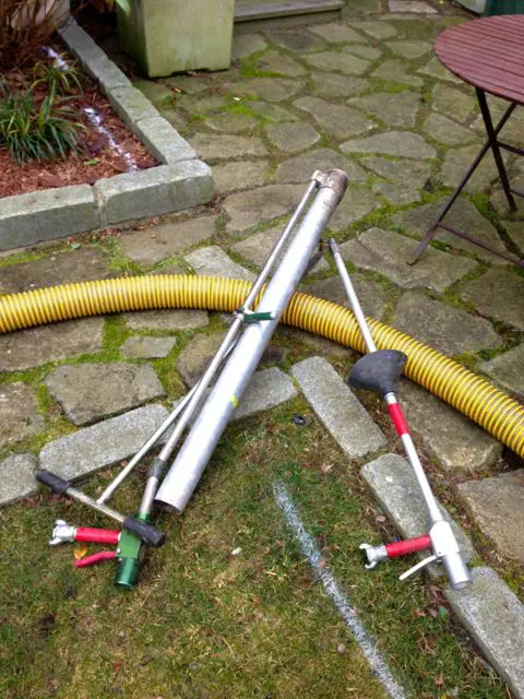 The solution: we hired an arborist who used “an air knife” to safely excavate soil from the maple’s tree roots without having to hack away with a pick or shovel and otherwise damaging the roots. The air knife uses compressed air (not unlike air tire pumps you find at gas stations) at about 185 psi rating. The pressure from the air knife removes soil away by focusing a stream of air around the roots.